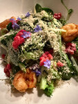 Красивый вид из окна, очень вежливый персонал, быстрая подача блюд. Заказывала 2 салата, ни один не понравился. Десерт птичье молоко вкусный, но ощущение было, что слишком много всего намешано там: вкус суфле перебивался. Коктейли вкусные, подача интересная