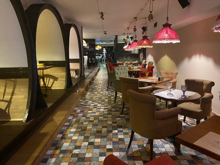 Отвратительная дрянь. Интерьер ужасный, просто блевотина. Заказали с другом мясо,обоим было плохо, ещё и за такие деньги. Меня тошнило ужасно. Атмосфера дешёвого клуба. НАХОДИТСЯ В ПОДВАЛЕ. Бедного мужика, который зазывает всех в костюме жалко, думаю, этот ресторан долго не продержится с таким соотношением цена/качество.