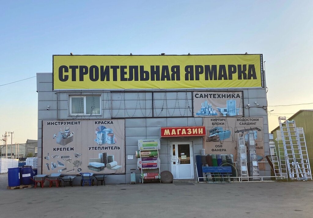 На этой ярмарке есть все что касается стройки!!!Закупаться можно так чтоб сразу дом построить.Кирпич,лес,кровля, утеплитель,двери,окна, линолеум,смеси,крепеж,все для бань,камень.Доставка,подъем все есть!!! Рекомендую!!!