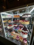 Перед заказом изучили витрину с тортами. Выбрали одним из претендентов на пробу ванильный чизкейк с ягодами. Когда нам принесли кусочек торта уже сразу возник вопрос, почему большая часть торта - это шоколадный плотный чизкейк, когда ожидание было — сплошной мягкий и нежный ванильный чизкейк? К сожалению, на витрине торт не был нарезан и поэтому не было понимания о том, как он выглядит изнутри, не доела половину, потому что шоколад в таких количествах не сильно люблю. Цены, конечно, отдельная история, думаю, что слишком завышены, хоть все десерты и выглядят вкусно и разнообразно.