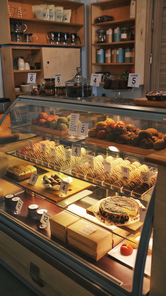 When we were planning a walk along the Slepyanskaya system, we saw this cafe on the map. We decided to check the reviews, and now we are writing our admired one) We found the cafe easily, there are a lot of arrows inside. The choice of desserts is large, we took several positions. I liked everything, the favorite of all favorites is cherry pie) The test is small, but it is interesting. There is no cloying. And the cream for it is very cool. Hazelnut shu is a delicate filling, thin dough. Lemon cupcake and financier - cupcake lovers will definitely be surprised, I enjoyed it) Macaroons are soaked, tender, sweet in moderation, with the coolest fillings. Thank you for such ideas!)