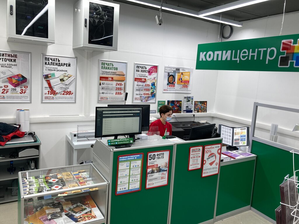 Копи центр не работает. Пришли, надо было одну бумажку срочно распечатать для страховой, там сотрудница на кассе хамка наорала, что она во всем магазине одна и от кассу никуда не уйдет. Зачем орать непонятно это во-первых, а во-вторых, полный беспорядок, если есть услуга и ее не оказывают