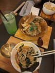 Небольшое уютное заведение. Персонал вежливый. Пробовали сливочный рамен с гребешками и рамен с креветками — понравилось. Расстроили кольца кальмара во фритюре, были пересолены.