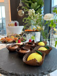 Заказывали кейтеринг на свадьбу (фуршет + банкет). Плюсы: - Еда была вкусная, особенно понравились нарезки и салаты. Гости остались довольны. - В качестве подарка нам предоставили горку шампанского и завтрак на утро после свадьбы. Это был приятный бонус. Минусы: - Очень непрозрачное ценообразование. Нам озвучивалась только итоговая сумма за всю смету (меню, обслуживание, транспортные расходы), при этом стоимость отдельных блюд нигде не указывалась. Оставалось только гадать, какие позиции в меню дорогие, а какие более бюджетные. Любые изменения меню согласовывались менеджером более суток, поэтому узнать стоимость конкретных позиций через обновление сметы тоже было невозможно. Это сильно затрудняло выбор блюд для мероприятия. - Часть официантов не была в курсе ассортимента напитков на кухне, хотя мы заранее передали менеджеру полный список. В результате некоторые гости так и не получили белое сухое вино: официант сообщил, что «не нашёл» его, и эти гости были вынуждены весь вечер пить только безалкогольные напитки. При этом, в конце банкета сотрудники кейтеринга вернули нам три неоткрытые бутылки этого самого вина.