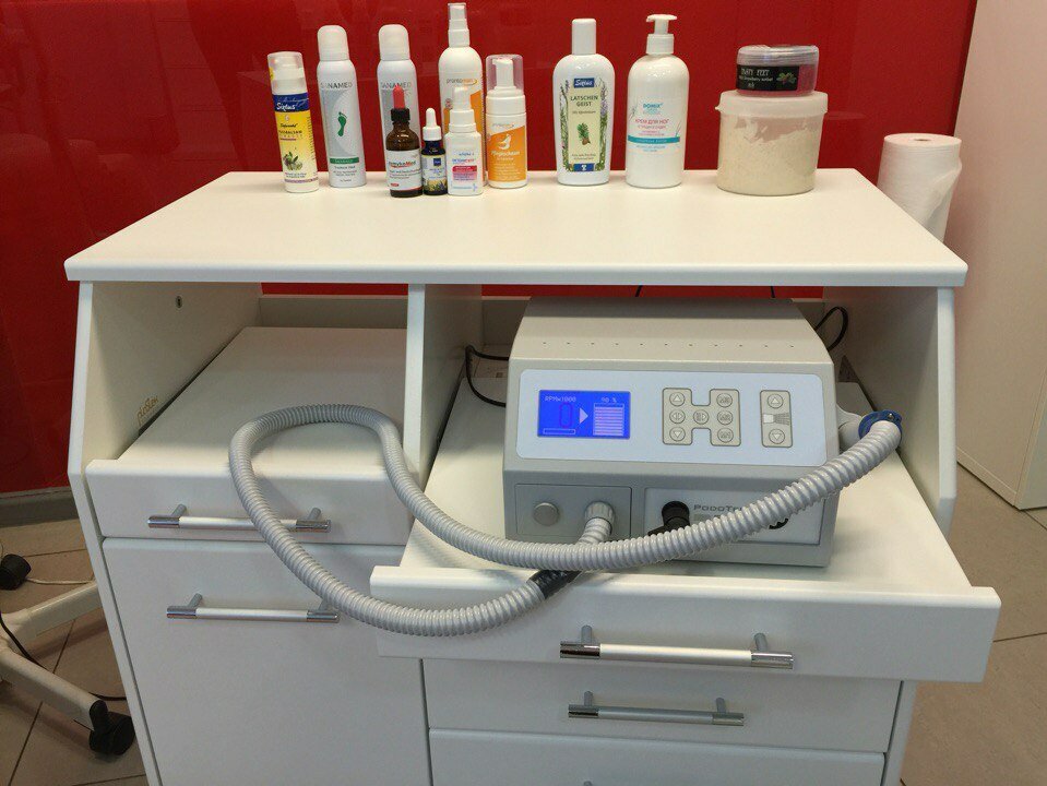 Подолог удаляет мозоль при помощи фрезы. Окружающие ткани не повреждаются. Период восстановления не требуется.