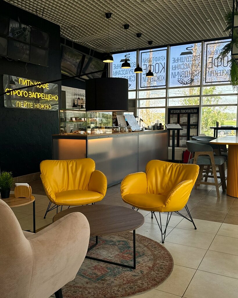 Это одна из моих самых любимых кофеен! Здесь огромный выбор напитков, выпечки и блюд. Бариста просто замечательные: вежливые и отлично справляются со своей работой, быстро готовят заказы. Особенно хочется отметить Лолиту и Егора — они просто потрясающие! 😍 Недавно в заведении обновили интерьер, и оно стало ещё уютнее. К тому же, рядом находятся мойка и заправка, что делает моё посещение ещё более приятным. Буду с радостью возвращаться сюда снова. ❤️