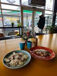Удивило качество еды. Удивило в хорошем смысле. Снаружи на вид забегаловка на заправке, но еда очень высокого уровня. Грибной суп насыщенный, густой, яркий, сухарики к нему хрустящие, чесночные. В сендвиче с лососем нежнейшая свежая рыба. Ещё муж брал английский завтрак, тоже остался доволен, но он скуп на похвалу 😅 В общем не обращайте внимания на антураж вокруг. Внутри очень уютно и очень вкусно)