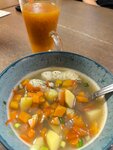 Зашли пообедать. Взяли куриные котлеты с пюре и я взяла весенний салат(это оказалась квашеная капуста). Лапши куриной в 13 часов не было. Котлеты по 350 р штучка, гарнир отдельно. Котлеты на мой взгляд как из магазина. Съесть можно, но не вау. А вот что еще огорчило, это цена на напитки. Стакан морса 250 р. Второй раз я бы не пошла сюда.