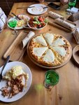 The food is normal, the service is indifferent and inconsiderate, with a big favor. We took the Shkmeruli - a large portion for 2 for sure. Delicious. The Georgian salad is medium (tomatoes taste plastic).
