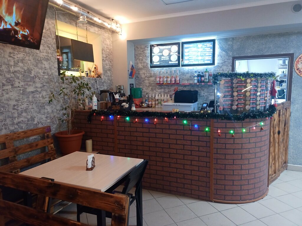 Действительно достойная пица!!! Семейная пиццерия, Рекомендую! Мы снимали жильё в доме 17 по соседству. Хозяйка посоветовала это заведение. Шли вечером с прогулки зашли, заказали. Готовность 30 минут, кстати! Это говорит о многом. Есть доставка. И уж точно не идёт в сравнение с известным брендом по соседству, лучшая пицца в городе! Тесто в меру по толщине, оно очень лёгкое и вкусное, начинки дрстаточно. Идиальный баланс теста и начинки! Мне понравилась пицца-бургер и дополнительно я просила халапенек побольше.