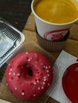Мой выбор - облепиховый чай и вкусный донат ! Очень приветливые доброжелательные девушки работают . Приятное местечко. Удобно , что можно с детками и с коляской посидеть во дворике .