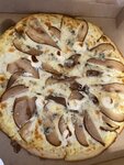 Всегда заказываю пиццу груша с горгонзоллой,рекомендую другим,вчера приехало вот это безобразие,груша настрижена неровными кусками,прямо с серединками,все вперемешку,груша видать маленькая была вот и настругали,как свиньям,позорище!