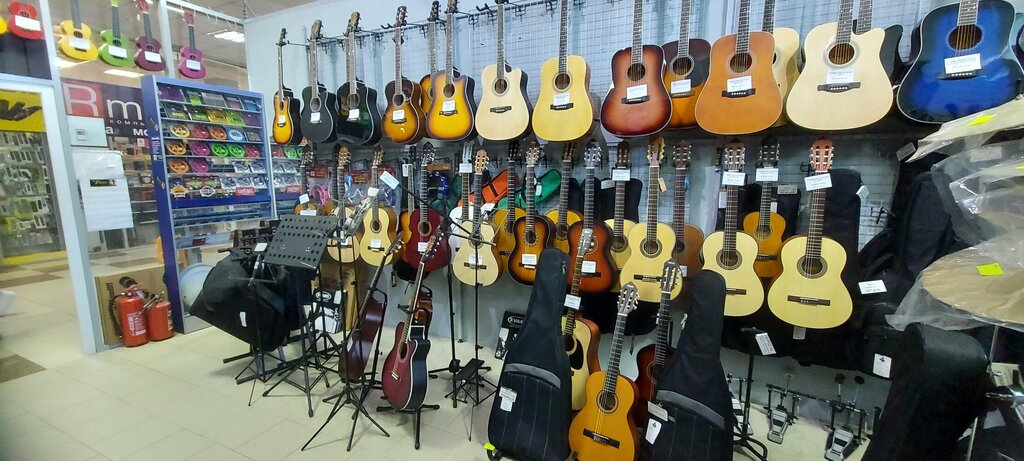 The only store within a radius of several kilometers, which is good news. Convenient location, marketable goods and several specific ones are available, you can order instruments, strings, accessories and accessories to order