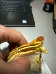 Назвать это пиццей можно с натяжкой. Примерно столько же общего, как у пиццы школьной. Это скорее пирог. Особенно огорчило отсутствие теста раскатанного, которое заменили круглыми лавашиками для роллов. Есть можно, но не сказал бы, что это вкусно.