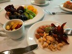 Волшебно отпраздновали день Рождения в Крымском Бризе в середине ноября. Горная гряда защищает местность от холодного ветра, поэтому даже в прохладное время года в Бризе безветренно, комфортно и тепло. Территория зеленая, воздух чистейший хвойный. Балийский парк небольшой, но красивый и продуманный до мелочей. Если вы любитель Японии, найдете множество интересных и знакомых элементов: мост Яцухаси, светильники Торо, террасы, пруд с карпами кои. Сотрудники отеля очень вежливы и приветливы, встретили как дорогих гостей. Номера уютные, планировка удобная, оснащение достаточное. Один момент, в номерах коннект шумоизоляция слабая. Матрас мягковат, спине не хватило поддержки, все остальное отлично. Виды из окон - мое почтение. Встречали рассвет с видом на 500-летнюю оливу. Вечером обновляют воду и принесли вкусный комплемент. Спа комплекс большой и светлый. Два крытых бассейна с морской водой, в одном вода +28, в спортивном +25. Банный комплекс на пару этажей ниже: финская, русская, альпийская, инфракрасная бани, хаммам и соляная комната. Повсюду в зонах отдыха стоит минеральная вода в бутылочках, а возле бассейна у бара можно попить чай. Шведская линия качественная, достаточно разнообразная: каши, сырники, салаты, молочные продукты, рыбные и мясные блюда, паровые овощи, всякие муссы, соленья, маслины каламата, десерты и большое разнообразие свежих фруктов и орехов. А вот жареного и вредной еды нет, одобряем. Кофе готовят и приносят сами. Есть цитрусовые фрэши. Обеды и ужины по комплексному сет-меню. Из пожеланий хотелось бы анимации для взрослых, в прохладный сезон кроме вечерних фильмов ничего. Следует также учитывать, что в отеле происходит реконструкция набережной, у моря и кое-где на территории может быть шумно, но в целом на территории и в номерах тихо, проход на пляжи в левой части пляжа открыт. Если немного ленно топать вверх, из любой точки можно вызвать электрокар, привезут куда скажете. Нам в целом все понравилось, отдохнули и даже искупались в море в ноябре.
