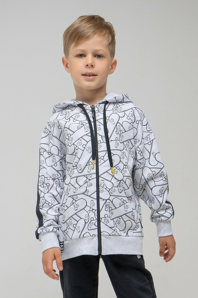Сарафан для девочки из петельчатого футера на кнопках с набивной отделкой. Лямки застёгиваются спереди на груди. Изделие имеет две кнопки по бокам и два накладных кармана спереди. Оригинальная набивка выполнена из стойких текстильных красителей. С...