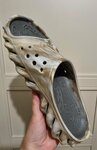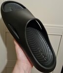 Ранее кроксы меня не интересовали: дачи нет, по городу не походишь... Но пришел тот день, когда я, окончательно изведясь в поисках домашних тапок, ориентируясь на требования ортопеда и отсмотрев огромное количество ортопедической обуви (которая, к слову, требованиям этих же ортопедов не соответствует полностью: негибкая, а часто и просто очень тяжелая негнущаяся подошва, отсутствие фиксации пятки, модели чаще всего сабо - все это создает излишнее напряжение в передней части стопы и пальцах.... )..эх, ну да ладно! Не нашла я ни за какие деньги в ортопедических салонах то, что хотел бы видеть на мне ортопед в качестве домашних тапок. Надоело ходить дома в балетках для танцоров, - протерла я их. И из душа в тряпочную обувь выходить неудобно. Вот сегодня (27 июля 2023 г.) поехала на Белую Дачу смотреть кроксы. Общалась с консультантом Антоном. Профессионал, внимательный к моим пожеланиям как покупателя, доброжелательный... очень приятный в общении молодой человек. Подобрал именно ту обувь, которая наилучшим образом мне подходит (из имеющегося в наличии, конечно), проверил по базе, есть ли в наличии в других магазинах размер одной модели, которая мне понравилась, подошла бы идеально, но в наличии нужного размера нигде не оказалось(((. В результате выбрала другие и купила шлепанцы себе, мужу, и присмотрела на будущее сапожки. Обувь очень комфортная. Покупкой я довольна. Консультанту очень благодарна, - без его помощи я бы закопалась в обилии моделей, размеров и цветов. Верю, что раньше ассортимент был шире, но сейчас что имеем. И неужели этого мало? Спасибо что есть это! В магазине есть программа лояльности. Обувь не имеет посторонних запахов, пробивается по приложению "Честный Знак". Фото прикладываю, но в реале и на ноге женские шлепанцы (мраморного цвета) выглядят эффектно, на полке я бы их не выбрала )). Всем Всех Благ!