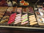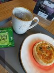 Большой ассортимент выпечки, пирожных, красиво оформленных. Есть салаты, чай, кофе. Персонал вежливый, приветливый, подсказали что выбрать из большого ассортимента.