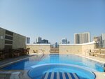 An urban-type 4* hotel, but it certainly doesn't pull for 4.Friendly staff. Our room was very spacious on the 13th floor. The furniture is of course very tired, but the room is clean and the beds are very large and comfortable. The window opens only for ventilation, there are no balconies.Cleaning and change of bed linen daily. Towels are also changed daily, but they are a complete mess, sometimes a big one, sometimes a manual one for two. Soap accessories (shampoo, lotion, gel, shampoo, toothbrush and paste) are reported daily as they are used.The tea table is the same, everything is reported daily (coffee, tea, cream and sugar) 0.5 liters of water per person.We were surprised by the paper dechman cups.There is a free safe in the room.The breakfasts are not fancy, but you will not stay hungry. The coffee is disgusting. There was a small pool on the roof of the hotel, which was warm when we were there, and towels were provided. There aren't many people. There is a transfer to Al Khan beach, everyone is taken away in the morning at 9, they were picked up back at one o'clock. There are shops and inexpensive cafes within walking distance.There is a Russian-speaking guide in the lobby Olga, who sells tours, is very friendly. If you have any questions about your vacation, I recommend contacting her.In principle, we were satisfied with our stay at this hotel.The photo shows the view from the roof, the pool area.