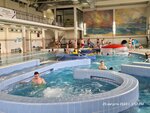 Бассейн кайф, есть 2 горки, для них отдельный бассейн, потеплее, чем основной. Основной разделен на полосы, ближе к выходу - мелко, дальше - глубоко. Есть крутой бассейн с гидромассажами, и "речка" с течением сильным, очень классно! Еще отдельно есть детская зона с маленькой горкой, а рядом с ней - что-то типо чана джакузи - там вода прям горячая очень. В зонах с душем есть сауна. На данный момент посещение стоит 350 руб с человека в час. Без второй обуви не пускают, нужно обязательно с собой иметь сланцы, даже если на вас уже сланцы надеты. На первом этаже есть бильярд и отдельная сауна с маленьким бассейном, но мне больше понравилось в большом общем бассейне