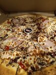 Администратор девушка неприятная. Со связью в городе проблемы, а на просьбу повторить начинает максимально противно отвечать, как будто бы я ей что то должен,а не она работает на работе. Заказывал пиццу ко времени, чтобы ее привезли горячей к определенному времени. Пицца приехала теплой, сыр уже весь слипся и превратился в корку. Взял пиццу Че Гевара 50см. Бортик взял сливочный. Пицца мне не понравилась, но я думаю это дело вкуса. Девушке понравилась, но в следующий раз решили взять Кубу. Видел отзыв о костях в пицце и подумал что бред какой то. И тут у меня реально попадается кость. Не понимаю как такое можно не заметить и отдать такую пиццу клиенту.