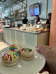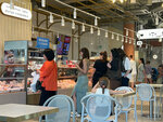 Заведение вызвало только одну ассоциацию: разброд и шатание. Уже неоднократно все писали что сделать заказ тут практически невозможно, так как люди подходят к двум кассам для заказа, а там кассир с абсолютно безразличным лицом говорит "На кассе только оплата, заказ у прилавка". А как сделать заказ у прилавка решительно непонятно, везде стоит толпа и рассматривает витрины. У выпечки, по центру прилавка, стоит 2 кассы, людей за ними никогда нет, в итоге большинство посетителей, не понимая чего от них хотят, просто уходят. В итоге, методом давки через толпу зевак, смог узнать что заказ нужно делать в другом конце прилавка у кулинарии 🤦