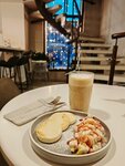 Прекрасное место, уютное место для, деловых встреч, еда вкусная и свежая, карбонара вкуснейшая, вафли брауни пальчики оближешь, а сырный суп с сухариками просто взрыв мозга, не проходите мимо загляните на обед или завтрак, а можно и на ужин 🍽 всё горяченькое и вкусное!!!!! А так же хочу отметить прекрасных вежливых баристов Василису и Эльмиру