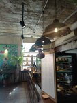 Очень приятный интерьер, много зелени, неплохое меню, замечательные и очень большие круассаны. Из минусов: - долго ждали свой заказ - салат с креветками. Видимо, про нас забыли. Пришлось напоминать девочкам о нашем заказе. - не понравилась подача кофе в низких широких стаканах. Небольшая, по определению, порция американо плескалась на дне такого стакана. На мой взгляд, это не особо эстетично смотрится.