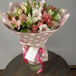 Сборный букет из лилии и альстромерии в синем оформлении