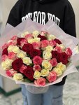 Букет из 21 красной, белой и розовой розы - микс ( высотой 40 см.)