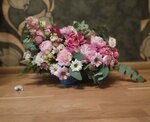 Состав: гвоздика 9 шт., колосья 10 шт., эвкалипт 0,3 шт., пленка 2 шт., лента 1 шт. Цена указана «ОТ».