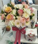 Делала доставку из другого города т.к. мама в больнице,выбрала данный магазин по отзывам,но как оказалось ошиблась с выбором (данный отзыв оставляю с учетом загруженности в праздничный день,есть с чем сравнить), заказ был сделан 8 марта в 12:28 (1 фото), в 17:30 был сделан звонок в магазин с уточнением успеют ли они,поскольку больницу для входа закрывают в 20:00,ответ был " постараемся", в 19:30 я снова набрала,на что мне ответили "у нас нет связи с доставкой,напишите в тг,мы там скинет номер и у них все узнаете",созвонились с доставкой, я объяснила ситуацию девушке,что больница до 20:00 открыта,девушка сказала,что "если не успеют найти курьера,то доставят утром,я перезвоню вам через 5 минут" - звонка не последовало,в 20:30 позвонил курьер ( зачем уже отправлять человека когда было сказано несколько раз что открыто до 20:00? - не понятно).Сюрприз маме не удался в день праздника,уже "прекрасно",но подумала доставят утром,как и обещали,но и тут мимо.Около 10:30 узнав уже у мамы,что никакой доставки не было мне пришлось снова звонить в доставку объясняя ситуацию,мне сказали найдут накладную, все посмотрят и перезвонят через 5 минут,но и тут чудо не случилось,перезвонили через 3 часа.Сказали букет отправили в магазин и к 17:00 будет доставлен и впервые извинились( хотя бы и на этом спасибо).Букет был доставлен 9 марта в 16:30!Но и тут сюрпризы не закончились,далее ожидание (что заказывали 2 фото) и реальность ( фото 3 то что получила мама)! Заказ был сделан по сайту и после заказа данного букета было написано нет в наличии ( то есть должны были учитывать,что заказ уже есть и на него нужно оставить цветы!). Данные букеты абсолютно разные по цветотипу, но больше всего разозлило сам факт того,что со мной даже не связались и не предложили иную замену ( как должно быть по факту!),зелёные хризантемы куда там вписываются вообще?это ужас.Фото 4 это букет в день получения,можно сказать о том,что напихали туда остатки " ли ж бы было",на розе гнилой лепесток,который не сложно не заметить.Курьер принёс извинения и вместе букетом принёс коробку Рафаэлки, но разве спасет ли это все данную ситуацию по халатному и без ответственному отношению к клиентам?Нет. Данный отзыв оставляю,чтоб устраинили такие косяки и в дальнейшем люди не остались с таким разочарованием, как осталась я.