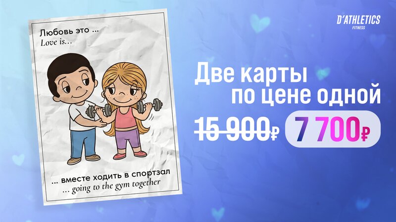 Занимайтесь спортом без ограничений и получите лучший пакет сервисных услуг фитнес клуба D'Athletics, тренажерный зал, групповые программы, йога, пилатес, питьевая вода и сауна! Заморозка в подарок!