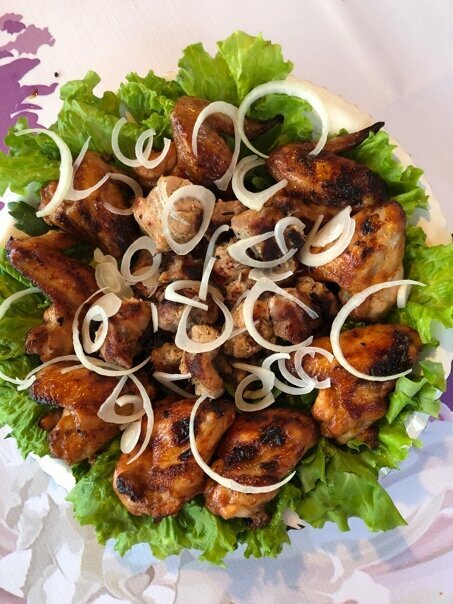 Взяла рульку целиком. Недоваренная и потом не запеченая, просто соусом полили и все. Все знают вкус этой рульки, должна рассыпаться и твять во рту. Дольше надо варить, потом смазывают знаменитым соусом с медом и запекают. Невкусно....и все, что с мясом- мясо жесткое. Даже удивилась. Баклажаны пресные вообще. Норм были только кольца кальмара и пирожки фаршированные баклажанами с фаршем, это вкусно. Доставка хорошая, вовремя, звонит сам повар, все вежливо, уточняет. Но рулька убила...и никакой она не килограмм, маленькая....
