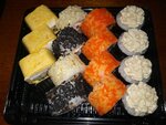 Рис, водоросли нори, сыр Cremette, лосось с/с, икра масаго, огурец (соевый соус, имбирь маринованный, васаби)