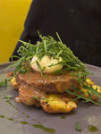 Вчера посетили кафе-ресторан.Шли конкретно на новое меню. По работе персонала:спасибо хостесс,внимательно,приятна,знает свою работу. Обслуживала стажёр Даша-для стажёра просто прекрасный профессионализм-знает новое меню,даёт рекомендации,вовремя убирает посуду,внимательно,одновременно обслуживала 3-4 стола,причём с большим количеством капризных непослушных детей,она даже ухом на это не моргнула, хотя это было тяжело вытерпеть-умница,сделала нам вечер,чаевые с удовольствием. По кухне-кондитеру низкий поклон-такого вкусного фондана я ещё не пробовала ни в одном ресте СПб. Тартар-эта же история,ооооочень достойно, соус подобран изумительно,ажурные греночки. Салат с копчёной кетой,чукой и ореховый соусом-манифик. Коктейли,были не все в наличии,но красиво,просто и очень вкусно. Что разочаровало,но это коснулось только одного блюда-свиные медальоны с картофелем и лисичковым топпингом. Сухо,гора рукколы,нежующийся сухой без вкуса грибов топпинг-думаю,тут что то надо доработать,само мясо сделано прекрасно,но не хватило влажности,увы. И ещё непонятное для меня блюдо селёдка на дранике.Нет,оно понятное,с кислым соусом,невонючим маринованным лучком. Красиво, но...невкусно.Все испортил драник-сырой,нехрустящий,резиновый.А так-идея великолепная.Драник дожарить и будет манифИк. Вообще очень рада за "Дачу",как то всё приятно удивительно поменялось. Если бы не горячее и драник-5 баллов однозначно. А так-4.9 с плюсом. Рекомендую обязательно.Ребята молодцы-приду на том-ям и ещё много что приглядела. Горжусь,Киров!😘