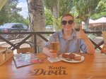 В кафе вкусная еда. Из алкоголя только пиво, вино рядом в "Винном погребке". Можно выбрать различные блюда из меню как для взрослых, так и для детей. Очень понравилось то, что во время жары включают увлажнители воздуха, находящиеся по периметру кафе. Через несколько минут легче дышать, чувствуется свежесть в воздухе. Овощи и рыбу на мангале брать не стоит. Есть другие более вкусные мясные блюда. Например, люля-кебаб (очень вкусно), свинина отбивная по-французски и др. Разные гарнир к мясу, есть различные супы. Брали суп солянку. Вкусно. Большое разнообразие безалкогольных напитков. Очень вкусно! Брали мохито классическое. Понравилось. С лета 2024 года кафе закрылось, так как народа мало, да и работать некому.