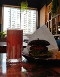 немного сложно найти, ориентир магазин "Мясо халяль", нужно пройти через него и вы окажетесь в этом замечательном месте брали 2 бургера Black, очень вкусные, на первый взгляд кажется что маленький, но на самом деле огромный и очень вкусный махито очень вкусное, давно нигде такое не брала, не просто газировки налили, а постарались, вкус незабываемый всем советую, большой выбор бургеров, скоро будут новинки с креветкой и рыбой, очень жду обслуживание замечательное, дружелюбный и общительный персонал мясо свежее, прожаренное и сочное Захожу уже далеко не первый раз и это самое любимое место которое хочу посоветовать всем, на сколько невероятный персонал и атмосфера, а бургеры, это что-то невероятное