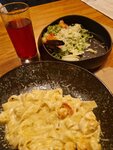 Красиво, атмосферно! Даже вкусно, хотя я превереда) муж рёбрышки оценил, хотя давно его в Нск и на Ставрополье данным блюдом не радовали.... морепродукты вкусные, повар умница! персонал-молодые девушки доброжелательные, могут подсказать в выборе! Но.... не курящим людям тут делать не чего, даже на то что девушка администратор спрятала нас в угол по моей просьбе, чтобы нас не обкурили) мы с сыном как ёжики в тумане сидели... не переношу запах кальяна. Вытяжки не справляются. Больше не хочется к вам возвращаться (