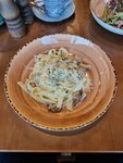 Милое заведение с домашней спокойной обстановкой. На первый взгляд персонал странный, но потом оказываются дружелюбными и общительными. 1). Тар тар из говядины - вкусно. 2). Салат с ростбифом - съедобно. 3). Феттуччине с белыми грибами - слабовато. 4). Бифштекс с печёным картофелем - съедобно. 5). Шарлотка - очень вкусно и по-домашнему! 6). Брауни - вкусно.