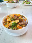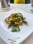 На это место просто так не наткнуться, спрятано чуть во дворе, местно новое. Не могу сказать как здесь вечером, посещали днём, было тихо, никого кроме нас. Ценник средний. Готовят быстро. Заказывали салат и супы. Есть счастливые часы, с 12 до 16 скидка 30% Обслуживание 15%