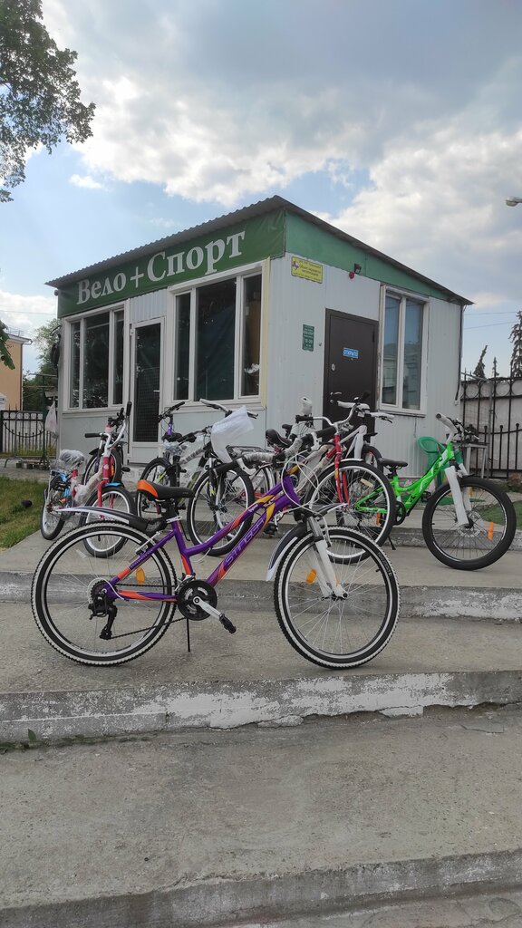Палаточка справа от входа на стадион. Телефон из навигатора действительный. Можно всё узнать по наличию, выбор велосипедов небольшой, зато много запчастей и аксессуаров. Продавец разбирается, посоветует как лучше сделать. Есть где поставить машину неподалёку.