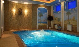 Большой зал с бассейном, финской парной и турецким хамамом, залом и комнатой отдыха и караоке