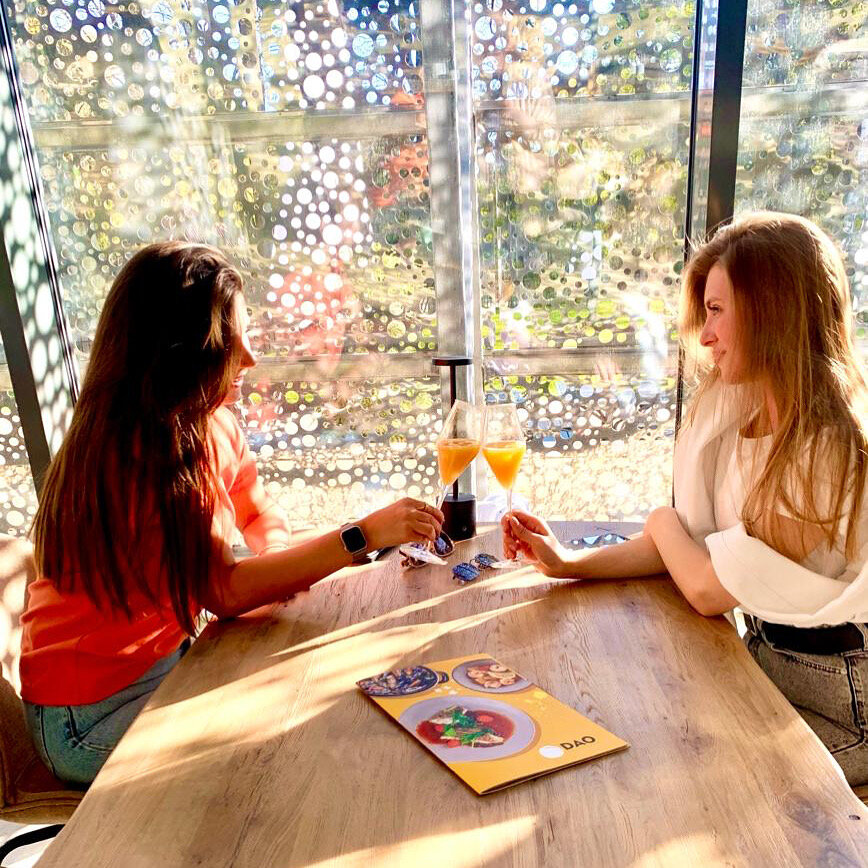 DAO- потрясающее место, атмосферное, уютное,с замечательным сервисом и божественной кухней. Авторский лимонад лайм- маракуйя- удар в сердце, вкусный, освежающий, лучший из тех, которые мне посчастливилось попробовать:) Вок выше всяких похвал, лапша и соус, креветки, кинза , перец и цукини создали непередаваемую палитру вкуса, легкая нотка перца раскрыла это блюдо с новой стороны, муж и дочь так быстро съели свой бургер, что я поняла, что это блюдо следующее в моем списке, детское меню лаконичное, ничего лтшнего, но именно то, что ест каждый ребенок: пицца и лапша и не только …. DAO для меня- любимое место с первого взгляда, ложки, эстетика вкуса и гармонии…..