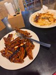 Не хочу ставить ниже, но и на 4 этот визит не тянет. Частенько к вам забегаю перекусить перед походом в салон, расположенный рядом. Всегда все было вкусно! Однако в этот раз я заказала яичную лапшу с говядиной и баклажаны. Яичная лапша резиновая, как и говядина в ней. Порция большая, но мяса в ней мало. Съедобная, съела потому что была голодна) Ну и в общем норм. А вот баклажаны… они залиты напрочь каким то странным приторным соусом с привкусом терияки. Они настолько приторные, что это блюдо можно было бы назвать: «баклажаны в карамели». Никакой сторонний вкус, кроме сладкого не чувствовался, как и вкус самих баклажанов. Съев 2 дольки, поняла, что дальше мои вкусовые сосочки это не выдержат. Это очень мокро, сладко и никак больше. В общем блюдо я дальше есть не стала. Не хочу снижать вам рейтинг и ставить плохие оценки, и надеюсь в следующий мой визит мне будет вкусно!