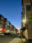 Продуманная и аккуратная застройка, удобное расположение. Рядом все торговые популярные точки и рынок. Пока еще мало зелени и ветрено. Дворы чистые, спортивные площадки, места парковки.
