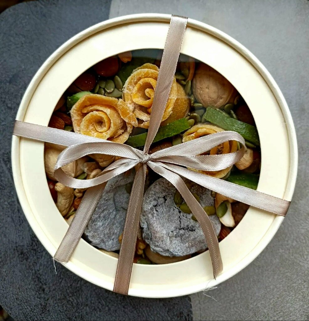 Подарочный набор из орехов и сухофруктов.