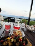 Из плюсов - вид на горы на летней площадке. Минусы - не удалось попробовать их кухню. Был один свободный столик в помещении. Не убранный после гостей. Попросили убрать. Через несколько минут на столе навели порядок. Менюшек в помещении не оказалось, все были на улице. Мы 10 минут просидели в ожидании меню и не дождавшись решили поехать в другое место, т.к. здесь о клиентах явно не заботятся.