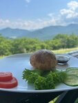 Кафе находится в отличной локации, прекрасные виды, но по кухне увы, не впечатлило, брали лагман, сковородку со свининой не вкусно, вкусный был компот из кизила и выпечка вместо хлеба в виде булочек. Ещё вкусные были чебуреки с сыром но называются они там по другому.