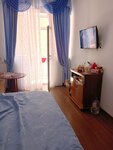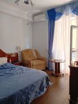 Очень понравился отель, приветливый персонал, обслуживание и сервис. Отель чистый, тихий, что важно на отдыхе, внимательные девочки администраторы, учитывающие все пожелания клиентов. Большие и уютные номера с нормальной мебелью, кондишенами, балконами, большой ванной и туалетом. Удобное расположение рядом с мостом не на набережной Мзымты, а чуть в глубине, от чего не слышно шумов и музыки с другой стороны вечерами. Большой плюс - оплаченные завтраки и наличие столовой в здании (можно обеды и ужины), никуда не надо бегать чтобы поесть. Рядом рыночная улочка со всем необходимым на отдыхе - одеждой, фруктами, сувенирной продукцией, кафе и шашлычками, и винным фирменным магазином. Пляжи во все стороны, куда не пойдешь, до торговых центров, супермаркета Перекресток 5 минут, до рынка и центра города 7-10 минут. Личной парковки для авто нет, но рядом с отелем на набережной всегда можно найти место для своей машинки в отличие от центра Адлера. Нам очень понравился отдых в этом отеле, в следующий раз остановимся там же по возможности. На фото отель с синей крышей.